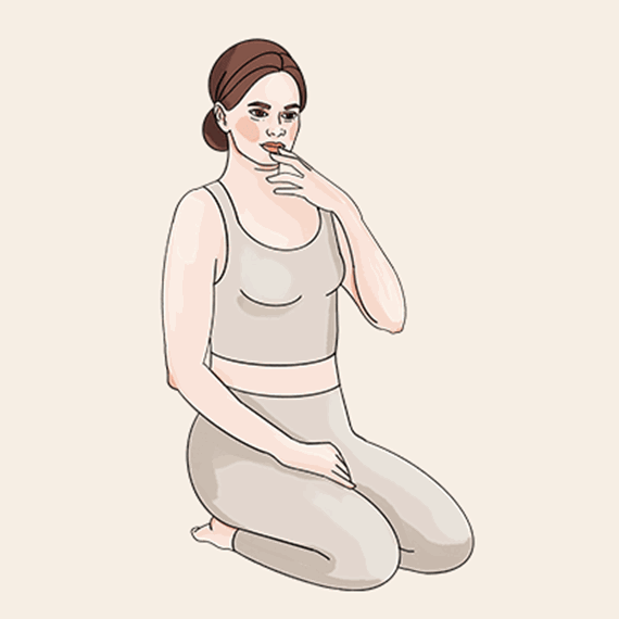 Pasul 2: Dacă te simți nesigur(ă) în această poziție, poți să-ți susții capul din spate cu o mână. Rămâi în această poziție de întindere timp de 2 până la 2 minute și jumătate. În acest timp, menține-ți spatele complet drept.
