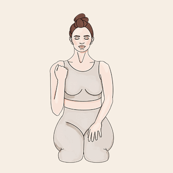 Pasul 2: Lasă-ți sternul să se ducă în jos. Rămâi în poziția de întindere timp de 2 minute.