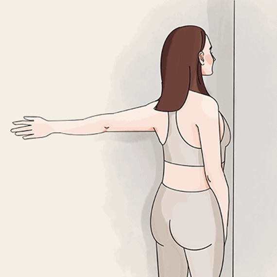 Pasul 4: Acum lasă în urmă poziția inițială și pune-ți brațul puțin mai sus decât înainte, ideal la un unghi între 10 și 15 grade deasupra liniei orizontale. Apoi întoarce-te din nou de la perete și încearcă să te concentrezi mai mult pe poziția de întindere de fiecare dată când expiri.